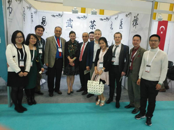 此次展台主体为九道,分别展示了9类中国传统文化,分别是琴道、茶道、礼道、易道、武道、禅道、香道、医道和书道。展台浓郁的中国风引起了参观者的浓厚兴趣。